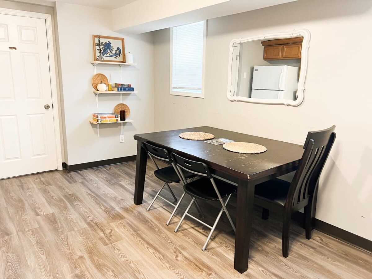 Welcome to our hideaway just blocks from NDSU and Downtown Fargo. Enjoy the use of our full kitchen with a dining area, fast wifi, and smart TVs in every room. The apartment features three bedrooms, a bathroom, full kitchen, and private in-unit laundry. You'll have this full apartment to yourself for the duration of your stay.