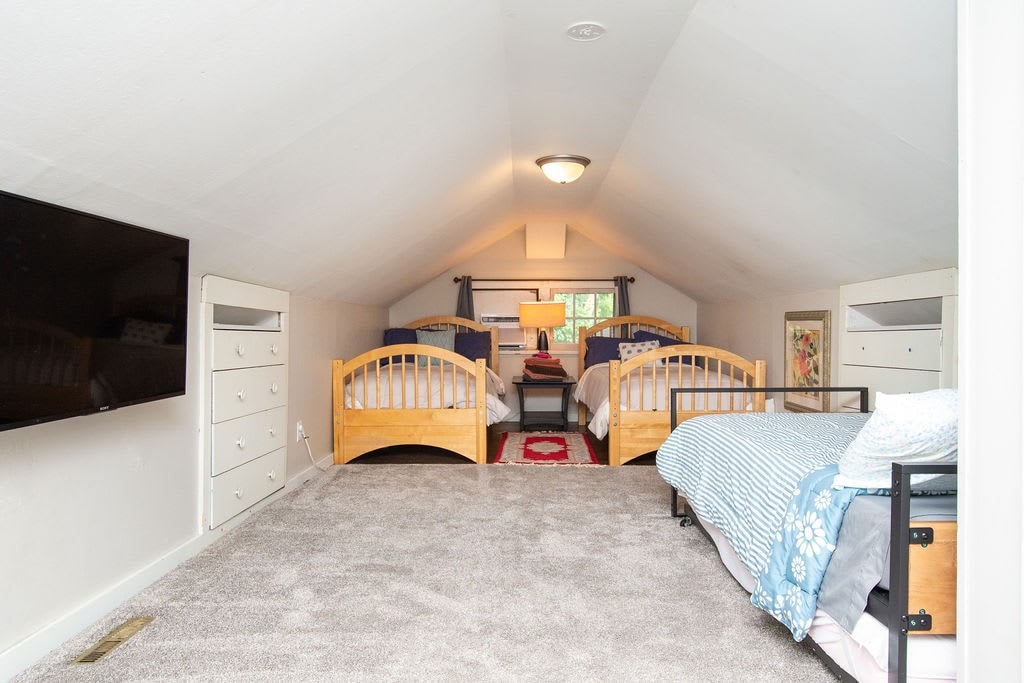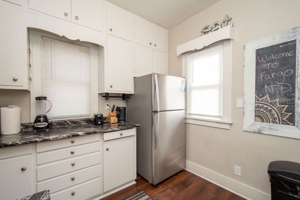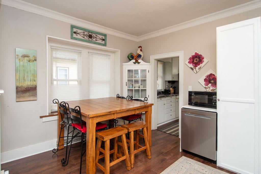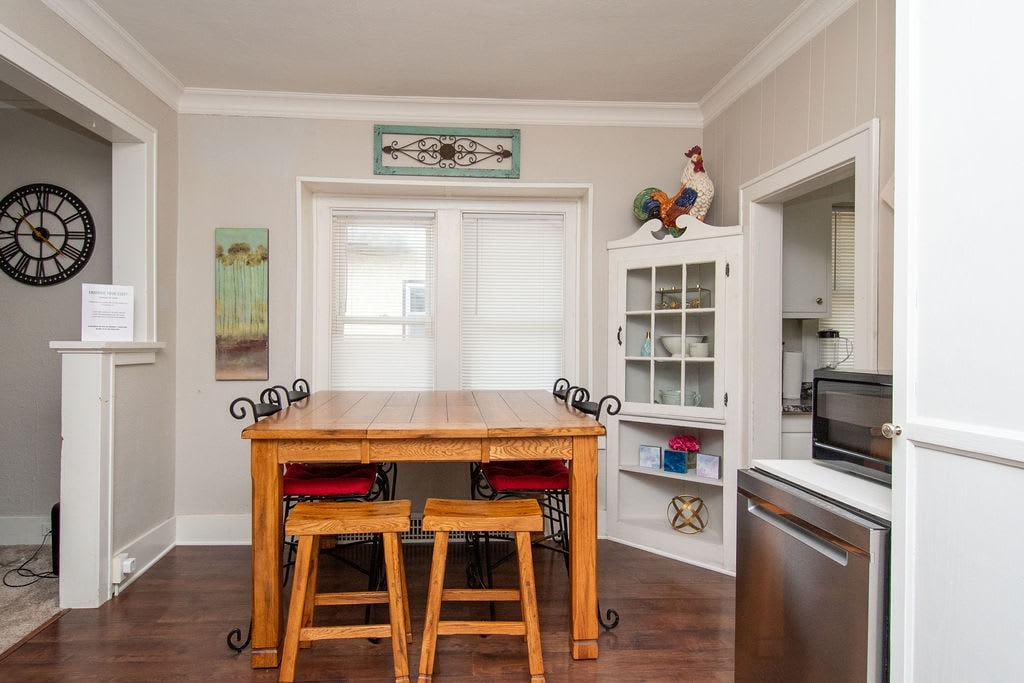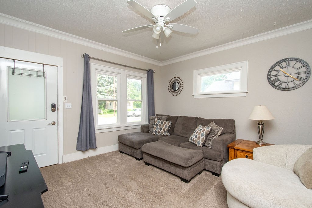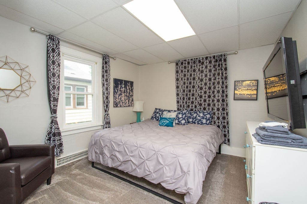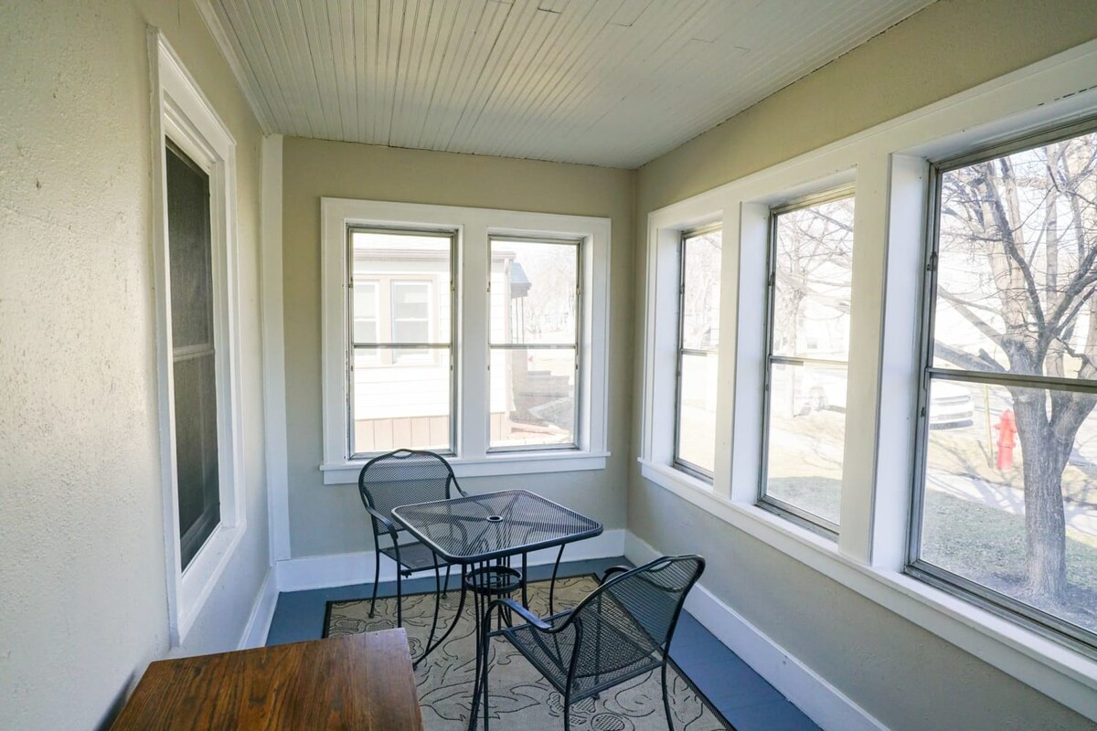 Entertain your group at this full home on the edge of downtown Fargo, only half a block from 701 Eateries, Fargo Brewing, and a grocery store. 5 bedrooms, 8 beds, 2 couches.
