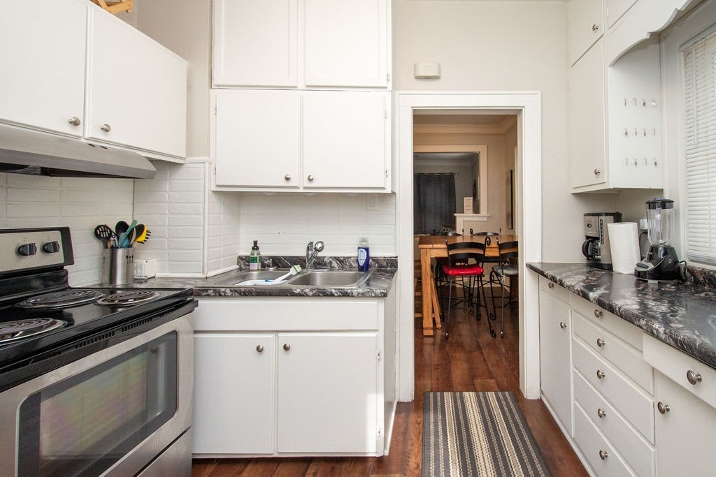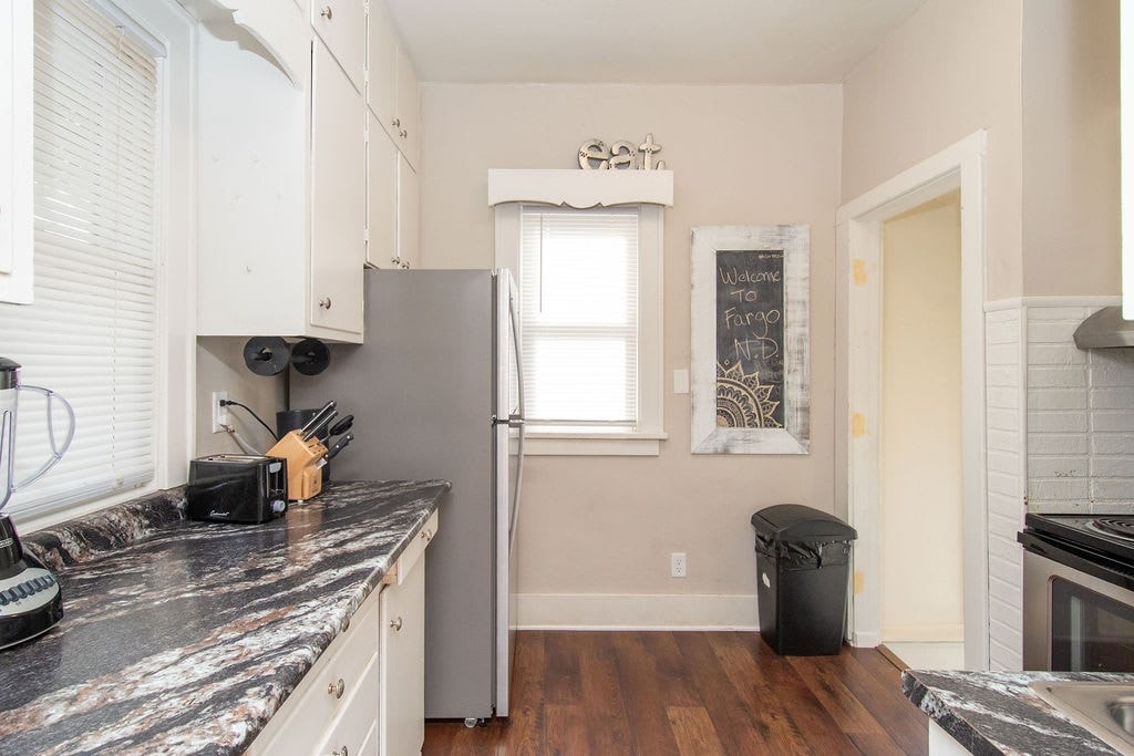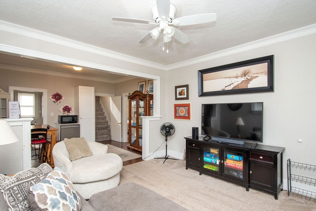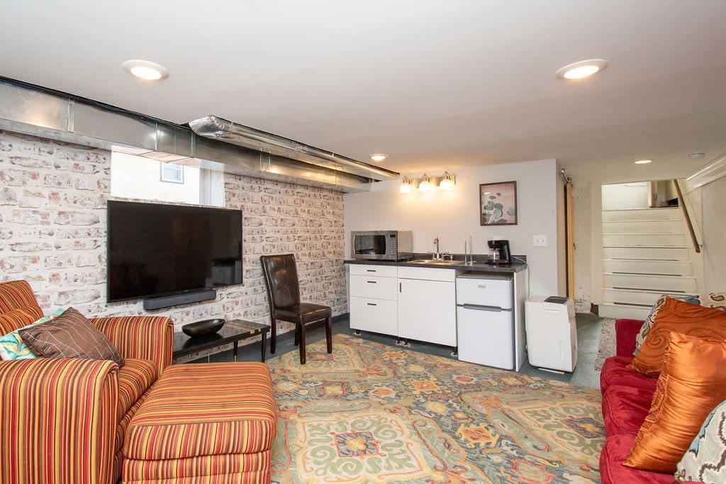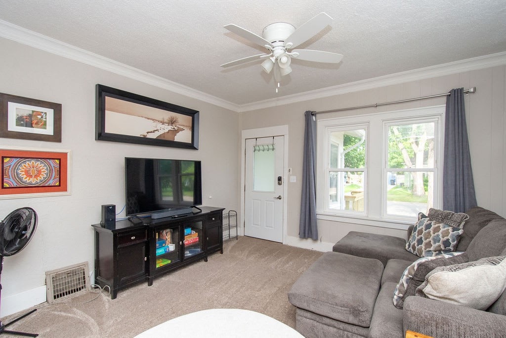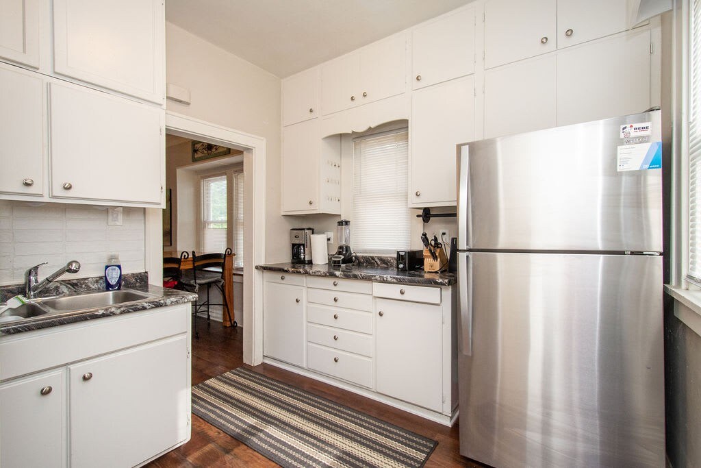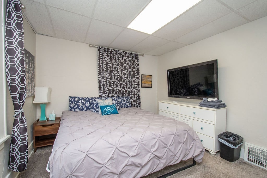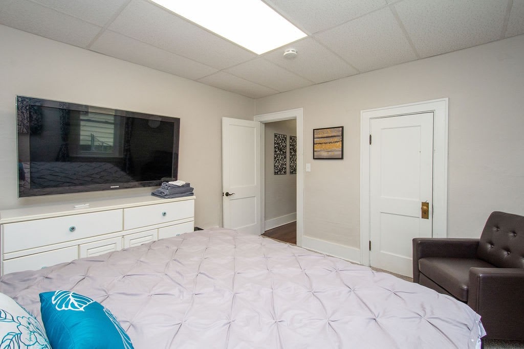 Entertain your group at this full home on the edge of downtown Fargo, only half a block from 701 Eateries, Fargo Brewing, and a grocery store. 5 bedrooms, 8 beds, 2 couches.