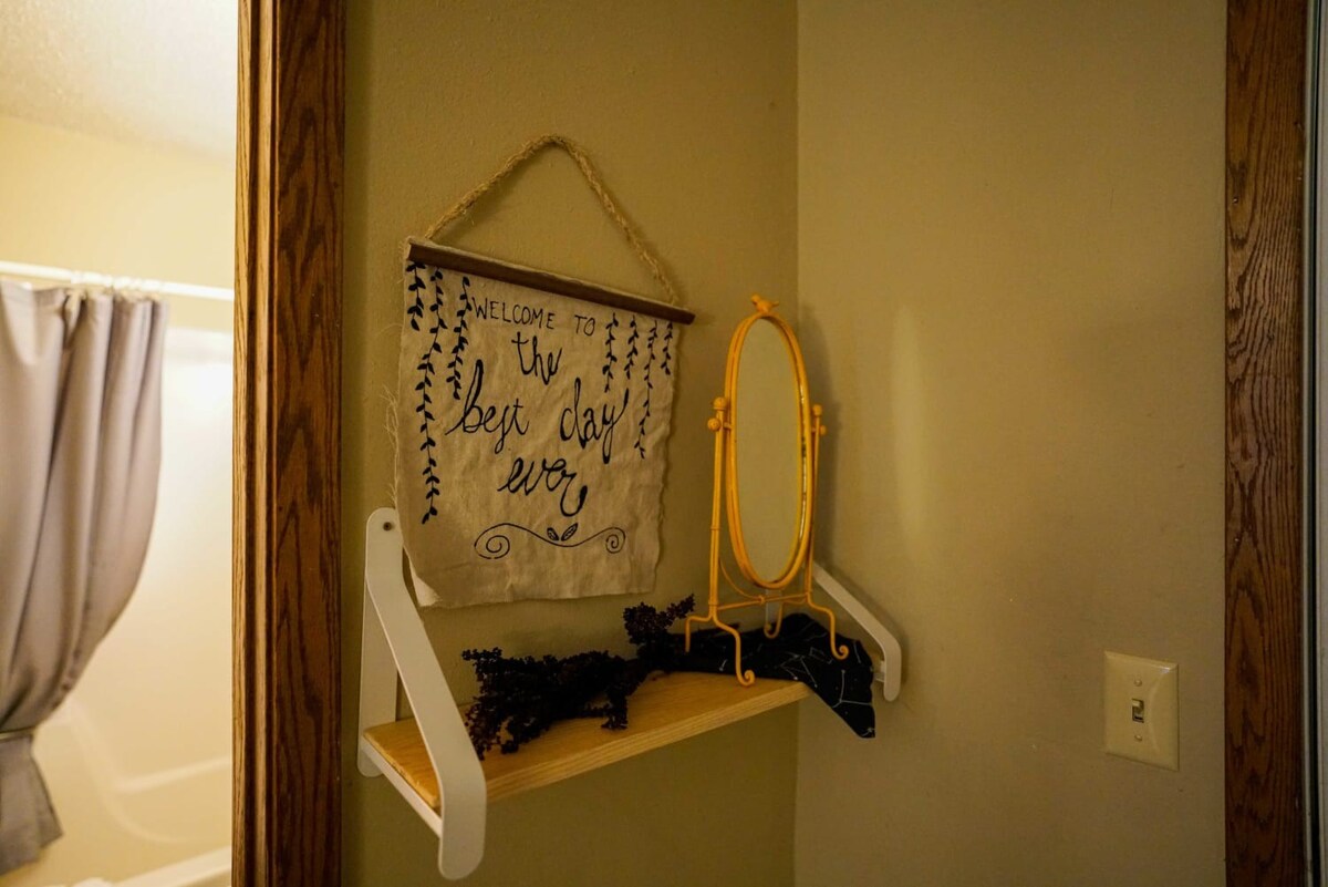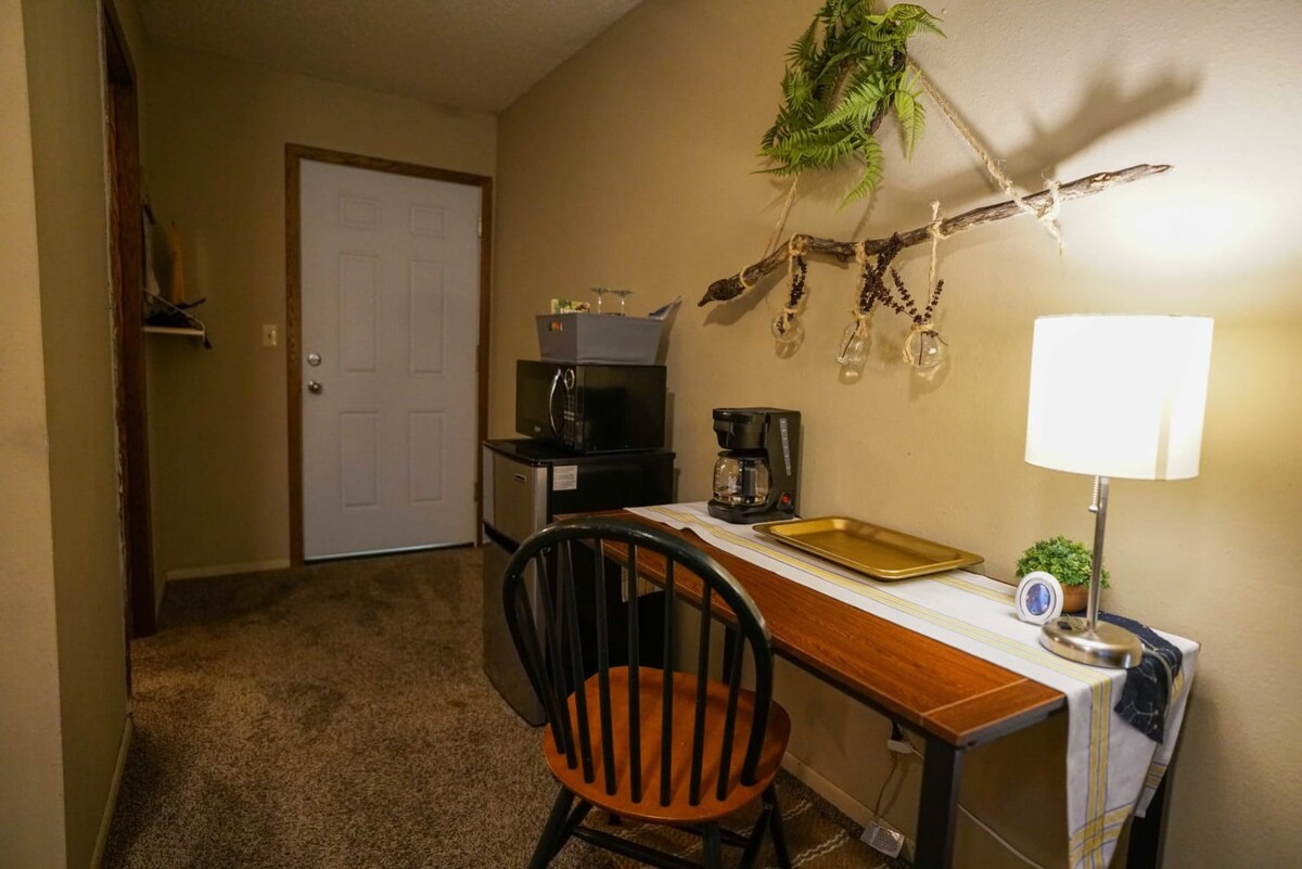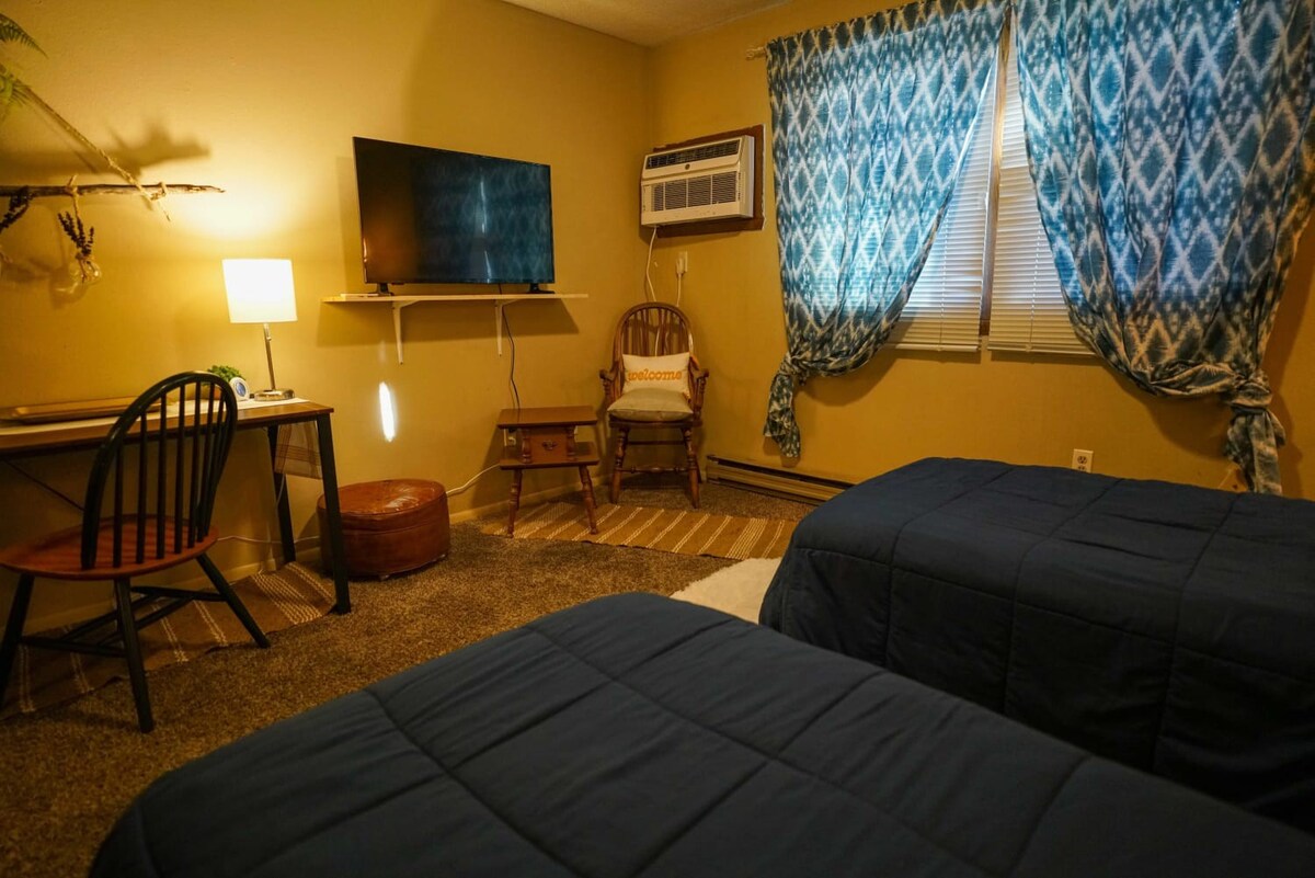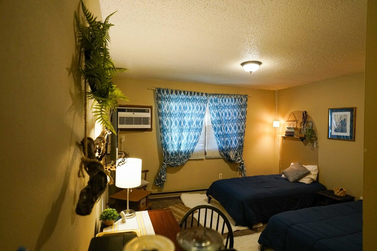 Cozy studio near NDSU. Two twin beds, mini-fridge, microwave, TV, Wifi, and a full bath. A large window provides plenty of natural light