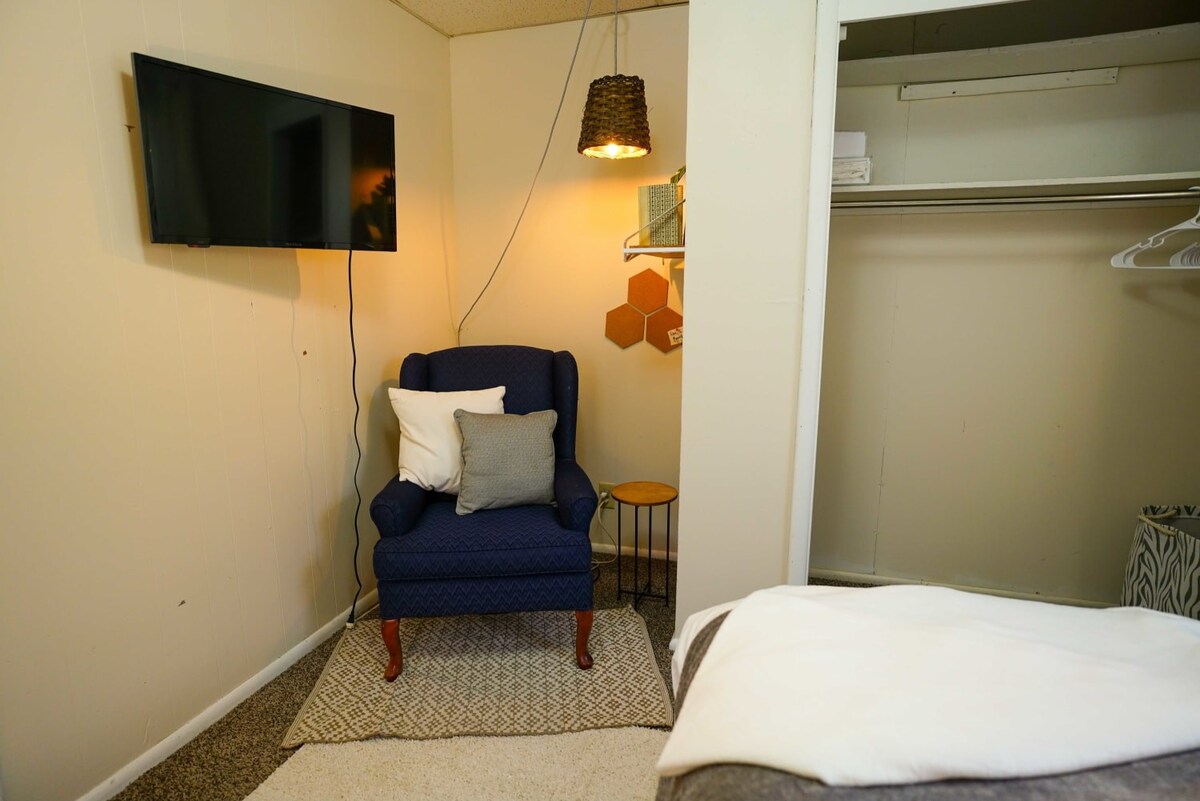 Make yourself at home in our cozy, vintage-inspired apartment in the heart of Fargo. With two bedrooms, a fully-stocked bathroom and full kitchen you'll have everything you need to make your stay comfortable. We're located just two blocks from NDSU and about 12 blocks from Downtown Fargo (an easy 5 minute drive or a 25 minute walk if you're feeling like stretching your legs). There are smart TVs in both bedrooms as well as in the living room. We have fast wireless internet (up to 300mbps) for all of your streaming needs, whether work or play. There is a laundry room in the basement of the other building that is attached to this building. It is coin operated, but doesn't keep the coins (the just fall out where the box would be and you can take them back).